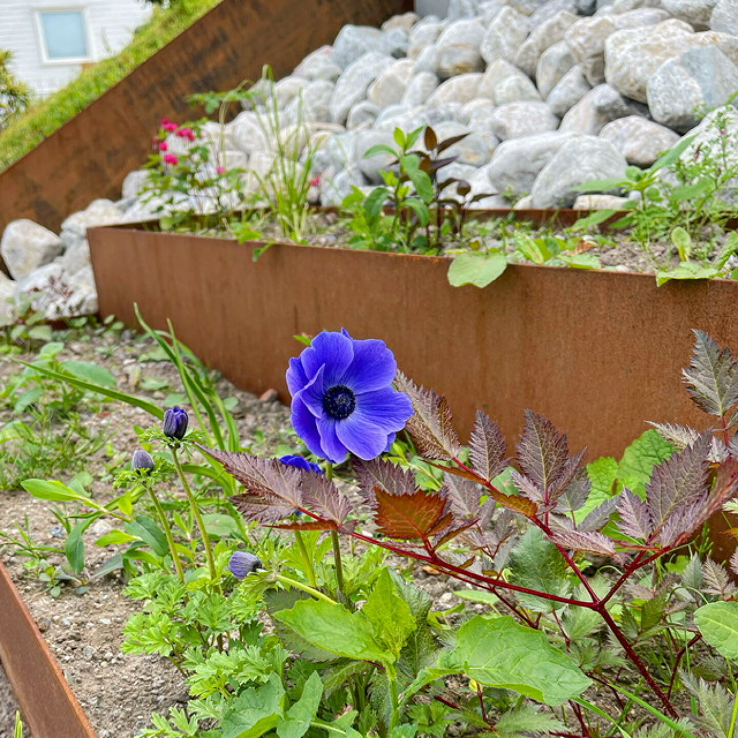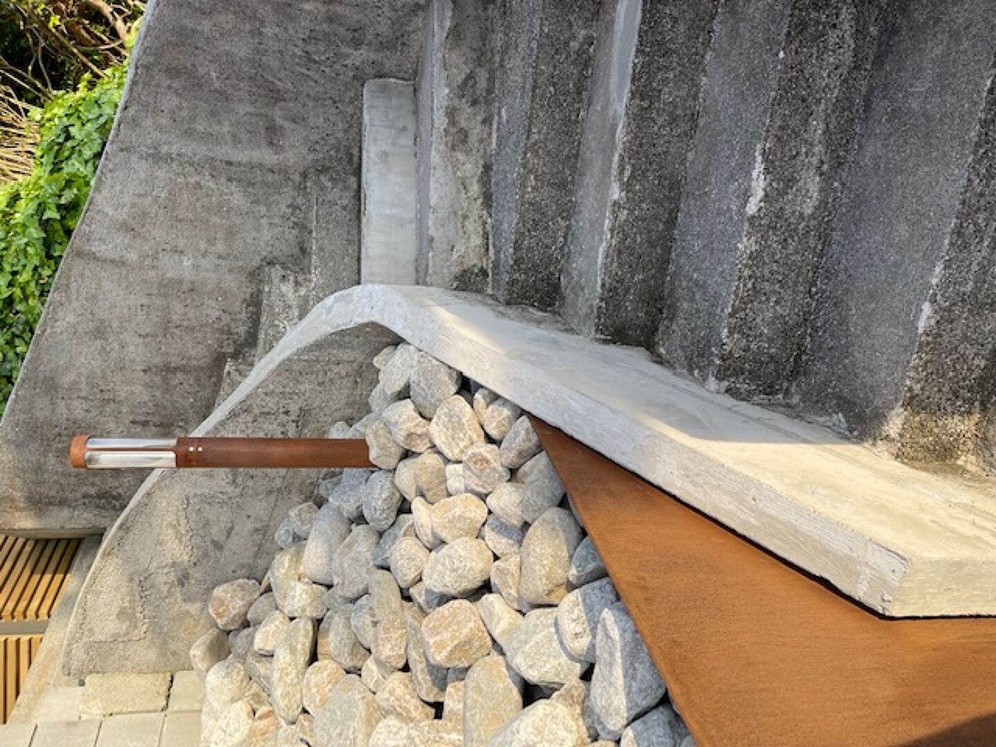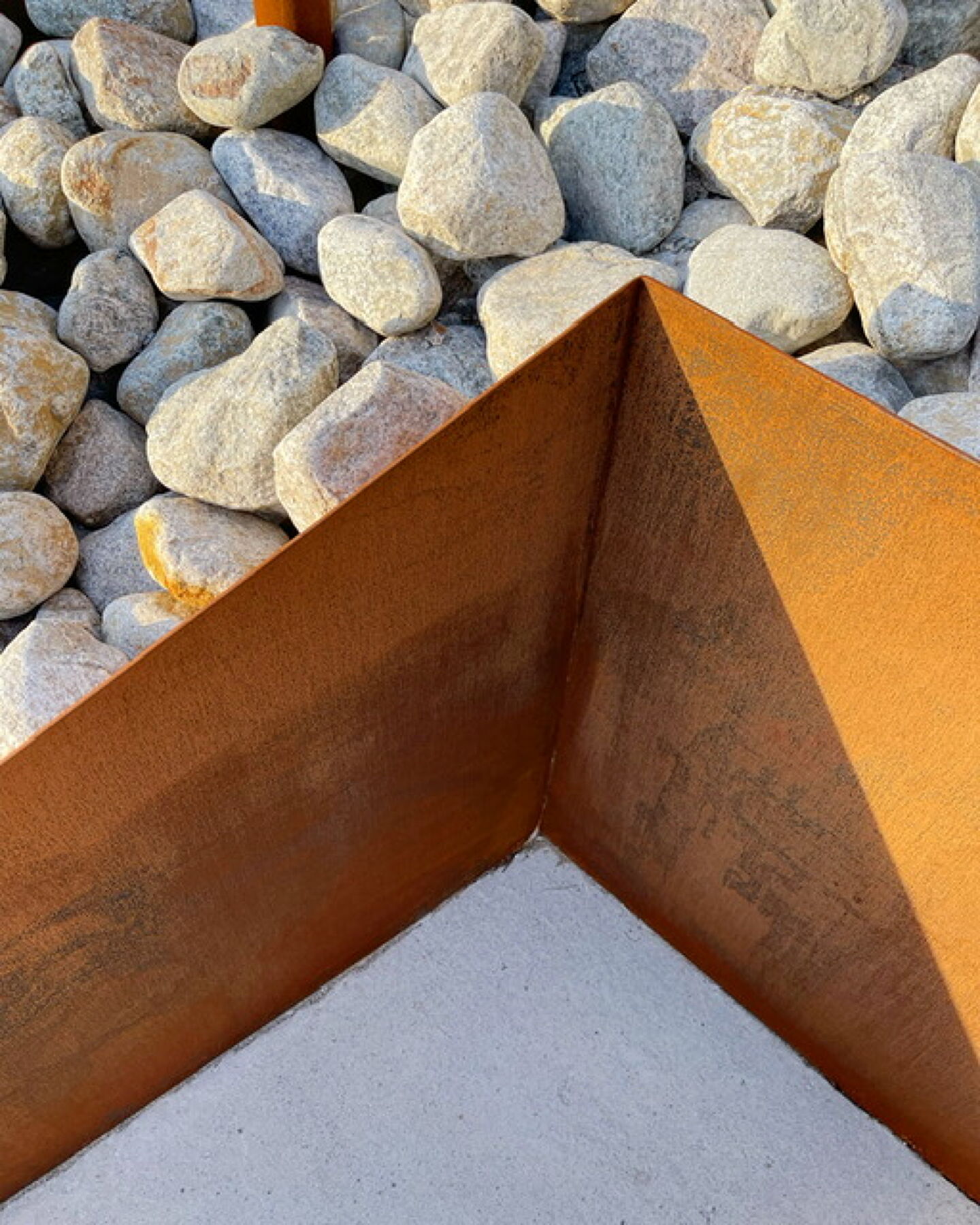 Vi ønsket å gjenbruke/reparere så mye som mulig av eksisterende betong m.m og legge til en fargerik hage del ved hjelp av corten stål.