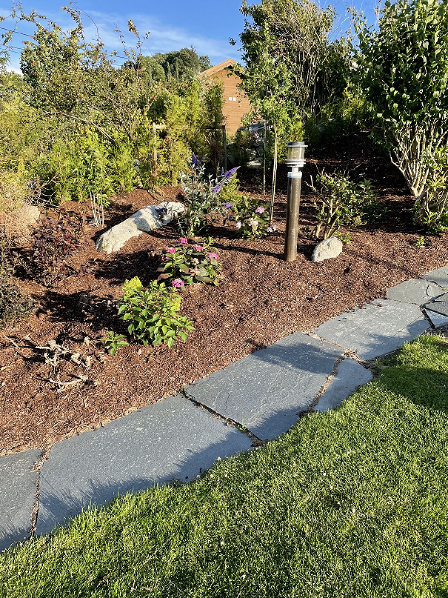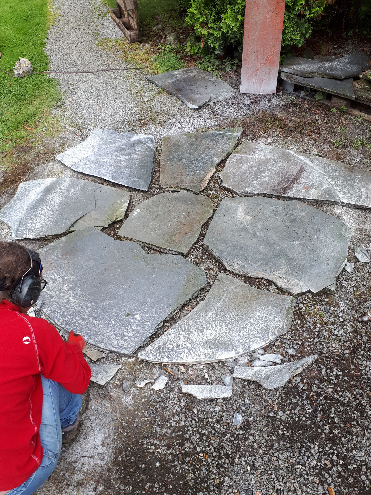 Vi utførerer, og legger alt i skifer, gjerne på støpt såle, og med fast fug mellom skiferhellene, eller på løst underlag hvor gress kan fungere som fug.